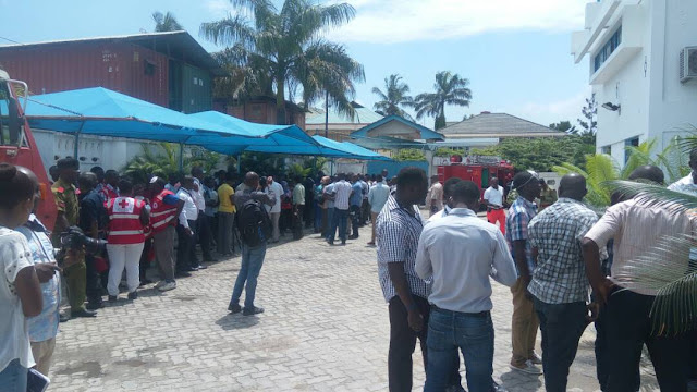 Baadhi ya Wafanyakazi wa Clouds Media Group pamoja na baadhi ya ndugu jamaa na marafiki wa Clouds wakiwa nje ya jengo hilo wakifuatilia tukio la uzimaji moto uliozuka katika jengo hilo mapema leo,Mikocheni jijini Dar.